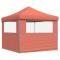 Tente de fête Terre cuite 292 x 292 x 315 cm Tissu OxfordCette tente de fête moderne et versatile est parfaite pour les événements en extérieur. Elle offre un grand espace abrité pour des occasions comme les mariages, fêtes et réunions de famille. Son design contemporain, alliant simplicité et fonctionnalité, fait qu'elle s'intègre à tous les cadres extérieurs. Installe-la dans ton jardin ou sur ta terrasse pour un coin confort pour chiller, dîner ou profiter du paysage. La couleur blanche apporte une ambiance paisible, que ce soit de jour ou de nuit. Matériaux résistants aux intempéries : Toit en tissu Oxford avec revêtement PVC pour une protection top contre le mauvais temps. Résistante aux UV et à l'eau, ta tente garde tes invités au frais qu'il pleuve ou qu'il fasse beau - parfaite tout au long de l'année. Composants inclus : La tente est livrée avec 4 cordes solides de 3,5 mètres et 8 piquets pour un montage sécurisé. Ces éléments renforcent sa stabilité, surtout quand le temps change, t'assurant une tranquillité d'esprit pendant les événements. Caractéristiques fonctionnelles : Son design pop-up rend le montage et le démontage super rapides, s'adaptant aux besoins d'imprévus ou de fêtes planifiées. Son cadre pliable permet un transport et un rangement aisés, parfait pour les hôtes qui organisent souvent des événements. Utilisations recommandées : Idéale pour les événements d'été dans les jardins ou espaces ouverts, cette tente est super polyvalente, offrant un abri pour les anniversaires, barbecues ou fêtes décontractées. Sa taille convient parfaitement pour un espace chaleureux, que ce soit pour divertir ou se détendre. Entretien : Entretiens ta tente en l'essuyant avec un chiffon humide, ça prolonge son apparence et sa durabilité. C'est simple et ça garantit qu'elle reste une belle addition à tes espaces extérieurs, prête pour chaque occasion. Bon à savoir : Ce produit n'est pas adapté à une utilisation par mauvais temps, tel que vent fort, fortes pluies, neige, tempête, etc. Ce produit ne convient pas à une utilisation comme abri pour voiture