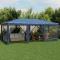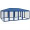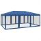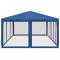 Tente de fête avec 10 parois latérales en maille bleu 6x4m PEHDCette tente de réception super cool, avec un cadre en fer robuste, un toit résistant à l'eau et dix parois latérales en maille, est un abri idéal contre le soleil. Matériau de qualité supérieure : cette tente de jardin est fabriquée en polyéthylène haute densité (PEHD) qui vous protège de la lumière directe du soleil et permet suffisamment de vent. La PEHD est spécialement traitée, elle est donc également résistante à l'eau.Cadre en fer : le cadre en fer de cette tente de jardin assure robustesse et stabilité.Design pratique : la tente est dotée de dix parois latérales en filet, qui vous protègent des insectes gênants. Et l'une des parois latérales est dotée de 2 fermetures à glissière pour une entrée et un accès facile.Larges applications : cette tente d'événements est un choix idéal pour un large éventail d'événements en plein air, tels que des spectacles, des mariages, des fêtes, des barbecues, des festivals, etc. Bon à savoir :Ce produit ne doit JAMAIS être utilisé par mauvais temps, tel que vent fort, pluie abondante, neige, tempête, etc. Tenez les enfants et les animaux domestiques à l'écart de la zone d'assemblage jusqu'à ce que le travail soit terminé. Certaines pièces peuvent présenter des arêtes vives, portez des gants de protection si nécessaire. Le gazebo doit être positionné et fixé uniquement sur une surface plane et horizontale. N'essayez pas d'assembler le gazebo dans des conditions venteuses ou humides. Ne placez pas votre gazebo dans une zone exposée à un vent excessif. Si vous utilisez des outils électriques ou une échelle, suivez toujours les instructions de sécurité du fabricant pour éviter les blessures. NE PAS utiliser de flammes nues dans le gazebo ou à proximité du pavillon. Les objets chauds tels que les grils récemment utilisés, les chalumeaux, etc. ne doivent pas être entreposés dans le pavillon de jardin. Assurez-vous que l'abri de jardin est conforme aux normes de construction locales. Fixez le pavillon à l'aide des chevilles fournies.