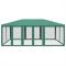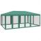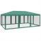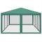 Tente de fête avec 10 parois latérales en maille vert 6x4m PEHDCette tente de réception super cool, avec un cadre en fer robuste, un toit résistant à l'eau et dix parois latérales en maille, est un abri idéal contre le soleil. Matériau de qualité supérieure : cette tente de jardin est fabriquée en polyéthylène haute densité (PEHD) qui vous protège de la lumière directe du soleil et permet suffisamment de vent. La PEHD est spécialement traitée, elle est donc également résistante à l'eau.Cadre en fer : le cadre en fer de cette tente de jardin assure robustesse et stabilité.Design pratique : la tente est dotée de dix parois latérales en filet, qui vous protègent des insectes gênants. Et l'une des parois latérales est dotée de 2 fermetures à glissière pour une entrée et un accès facile.Larges applications : cette tente d'événements est un choix idéal pour un large éventail d'événements en plein air, tels que des spectacles, des mariages, des fêtes, des barbecues, des festivals, etc. Bon à savoir :Ce produit ne doit JAMAIS être utilisé par mauvais temps, tel que vent fort, pluie abondante, neige, tempête, etc. Tenez les enfants et les animaux domestiques à l'écart de la zone d'assemblage jusqu'à ce que le travail soit terminé. Certaines pièces peuvent présenter des arêtes vives, portez des gants de protection si nécessaire. Le gazebo doit être positionné et fixé uniquement sur une surface plane et horizontale. N'essayez pas d'assembler le gazebo dans des conditions venteuses ou humides. Ne placez pas votre gazebo dans une zone exposée à un vent excessif. Si vous utilisez des outils électriques ou une échelle, suivez toujours les instructions de sécurité du fabricant pour éviter les blessures. NE PAS utiliser de flammes nues dans le gazebo ou à proximité du pavillon. Les objets chauds tels que les grils récemment utilisés, les chalumeaux, etc. ne doivent pas être entreposés dans le pavillon de jardin. Assurez-vous que l'abri de jardin est conforme aux normes de construction locales. Fixez le pavillon à l'aide des chevilles fournies.