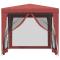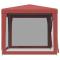 Tente de fête avec 4 parois latérales en maille Rouge 2.5x2.5 mCette tente de fête super cool, avec un cadre en fer robuste, un toit résistant à l'eau et quatre parois latérales en maille, est un abri idéal contre le soleil. Matériau de qualité supérieure : cette tonnelle est fabriquée en polyéthylène haute densité (PEHD) qui vous protège de la lumière directe du soleil et permet suffisamment de vent. La PEHD est spécialement traitée, elle est donc également résistante à l'eau.Cadre en fer : le cadre en fer de cette tonnelle assure robustesse et stabilité.Design pratique : le chapiteau a quatre parois latérales en maille, qui vous protègent des insectes embêtants. Et l'une des parois latérales a une fermeture éclair pour l'entrée et l'accès facile.Larges applications : cette tente d'événements est un choix idéal pour un large éventail d'événements en plein air, tels que des spectacles, des mariages, des fêtes, des barbecues, des festivals, etc. Remarque :Ce produit ne doit JAMAIS être utilisé par mauvais temps, tel que vent fort, pluie abondante, neige, tempête, etc.Chaque produit est livré avec un manuel de montage dans la boîte pour un montage facile. Certaines pièces peuvent présenter des arêtes vives. Portez des gants de protection si nécessaire pour éviter les blessures. Tenez les enfants et les animaux à l'écart de la zone de montage. N'installez pas votre tente sous les arbres en raison du risque de foudre ou de rupture accidentelle des branches d'arbres en cas de conditions météorologiques extrêmes. Il est recommandé de fixer l'abri à un objet inamovible ou au sol. Ne pas stocker ou utiliser d'objets chauds dans l'abri, tels que des barbecues, du matériel de soudage et des chalumeaux, afin d'éviter tout risque d'incendie.
