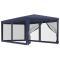 Tente de fête avec 6 parois latérales en maille Bleu 3x6 m PEHDCette tente de réception super cool, avec un cadre en fer robuste, un toit résistant à l'eau et six parois latérales en maille, est un abri idéal contre le soleil. Matériau de qualité supérieure : cette tonnelle est fabriquée en polyéthylène haute densité (PEHD) qui vous protège de la lumière directe du soleil et permet suffisamment de vent. La PEHD est spécialement traitée, elle est donc également résistante à l'eau.Cadre en fer : le cadre en fer de cette tonnelle assure robustesse et stabilité.Design pratique : le chapiteau a six parois latérales en maille, qui vous protègent des insectes embêtants. Et l'une des parois latérales a une fermeture éclair pour l'entrée et l'accès facile.Larges applications : cette tente d'événements est un choix idéal pour un large éventail d'événements en plein air, tels que des spectacles, des mariages, des fêtes, des barbecues, des festivals, etc. Remarque :Ce produit ne doit JAMAIS être utilisé par mauvais temps, tel que vent fort, pluie abondante, neige, tempête, etc.Chaque produit est livré avec un manuel de montage dans la boîte pour un montage facile.