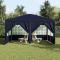 Tente de fête avec 8 parois latérales bleues 4x4 m PECette tente de fête est parfaite pour les événements en extérieur, pouvant confortablement accueillir jusqu'à 20 personnes. Avec son look bleu cool et sa facilité d'utilisation, elle transforme n'importe quel jardin, patio ou balcon en un lieu chaleureux pour les fêtes et célébrations. Disposition spacieuse : Avec des dimensions de 400 x 400 cm, cette tente offre beaucoup de place pour que les invités se mélangent tout en savourant de la nourriture et des boissons. Sa taille est parfaite pour les rassemblements en extérieur et permet différentes configurations. Matériau solide : Fabriquée en tissu polyester de qualité, cette tente de fête protège toi et tes invités des intempéries imprévues. Son cadre métallique robuste apporte de la stabilité et est anti-UV pour protéger les événements. Assemblage simple : La tente est fournie avec des ancres, des cordes et tout le nécessaire, rendant le montage facile pour deux personnes. Cette simplicité assure que tu puisses tout installer rapidement. Usage varié : Parfaite pour toutes sortes d'occasions extérieures comme des fêtes et des événements, cette tente ne sert pas qu'à un besoin pratique, elle embellit aussi ton événement. Look moderne : Son design contemporain et sa texture lisse s'harmonisent bien avec divers espaces extérieurs, apportant style et praticité pour toute célébration.
