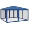 Tente de fête avec 8 parois latérales en maille bleu 4x4m PEHDCette tente de réception super cool, avec un cadre en fer robuste, un toit résistant à l'eau et huit parois latérales en maille, est un abri idéal contre le soleil. Matériau de qualité supérieure : cette tente de jardin est fabriquée en polyéthylène haute densité (PEHD) qui vous protège de la lumière directe du soleil et permet suffisamment de vent. La PEHD est spécialement traitée, elle est donc également résistante à l'eau.Cadre en fer : le cadre en fer de cette tente de jardin assure robustesse et stabilité.Design pratique : la tente est dotée de huit parois latérales en filet, qui vous protègent des insectes gênants. Et l'une des parois latérales est dotée de 2 fermetures à glissière pour une entrée et un accès facile.Larges applications : cette tente d'événements est un choix idéal pour un large éventail d'événements en plein air, tels que des spectacles, des mariages, des fêtes, des barbecues, des festivals, etc. Bon à savoir :Ce produit ne doit JAMAIS être utilisé par mauvais temps, tel que vent fort, pluie abondante, neige, tempête, etc. Tenez les enfants et les animaux domestiques à l'écart de la zone d'assemblage jusqu'à ce que le travail soit terminé. Certaines pièces peuvent présenter des arêtes vives, portez des gants de protection si nécessaire. Le gazebo doit être positionné et fixé uniquement sur une surface plane et horizontale. N'essayez pas d'assembler le gazebo dans des conditions venteuses ou humides. Ne placez pas votre gazebo dans une zone exposée à un vent excessif. Si vous utilisez des outils électriques ou une échelle, suivez toujours les instructions de sécurité du fabricant pour éviter les blessures. NE PAS utiliser de flammes nues dans le gazebo ou à proximité du pavillon. Les objets chauds tels que les grils récemment utilisés, les chalumeaux, etc. ne doivent pas être entreposés dans le pavillon de jardin. Assurez-vous que l'abri de jardin est conforme aux normes de construction locales. Fixez le pavillon à l'aide des chevilles fournies.