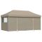 Tente de fête pop-up Taupe 580 x 292 x 315 cm Tissu OxfordCette tente pop-up est parfaite pour vos rassemblements outdoors, avec un mix de style, d'espace et de praticité. Super pour des mariages, des fêtes ou des réunions de famille décontractées, elle apporte tout le confort d'un événement en extérieur tout en vous protégeant des petites intempéries. Sa couleur taupe ajoute une touche chic et s'adapte à tous les jardins ou espaces extérieurs, créant une ambiance élégante pour chaque occasion. Matériaux Durables : Conçue en tissu Oxford solide, cette tente est faite pour durer. Les éléments en acier et PVC ajoutent à sa fiabilité, peu importe l'environnement. Ces matériaux garantissent que la tente est fonctionnelle et stylée, événement après événement, vous offrant une protection fiable pour vos événements en extérieur. Pack Monté Complet : Avec 12 piquets et 6 cordes inclus, cette tente s'installe en toute sécurité. Ces accessoires sont essentiels pour assurer la stabilité, pour le confort et la sécurité de vos invités. Les piquets et les cordes permettent de bien fixer la tente et de réduire les soucis quand ça souffle un peu. Parois Latérales Pratiques : Equipée de quatre parois latérales transparentes, cette tente combine protection et luminosité. Les fenêtres laissent entrer une belle lumière naturelle, rendant l'espace à l'intérieur lumineux et accueillant, tout en permettant aux invités de profiter des vues autour. Design Pop-Up Ultra Pratique : Le côté pop-up de la tente signifie que vous pouvez la mettre en place en un clin d'oeil, sans prise de tête. Parfaite pour des événements de dernière minute ou des montages rapides, elle simplifie l'organisation de vos rassemblements, vous laissant plus de temps pour profiter. Conseils d'Entretien : N'oubliez pas que cette tente est à utiliser seulement par beau temps. Elle n'est pas faite pour résister à de grosses intempéries comme des pluies torrentielles ou des vents forts. Pour l'entretien, pensez à vérifier régulièrement sa structure et à nettoyer le tissu pour qu'elle garde son aspect et ses capacités dans le temps. Ce produit ne convient pas aux intempéries telles que le vent fort, les chutes de neige et les conditions météorologiques extrêmes.