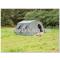 De grande taille (3,40 x 3,10m), cette tente verte offre deux entrées et quatre fenêtres d'aération refermables, avec moustiquaires, pour plus de confort.