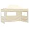 Tente pliable avec 3 parois 3 x 4,5 m CrèmeNotre tente pliable, dotée d'un cadre en acier enduit de poudre, d'une couverture de toit 100 % imperméable et de 3 parois latéraux, constituera un abri idéal contre le soleil et la pluie. Utilisations multiples : cette tente pliable avec 3 parois latérales sera idéale pour un large éventail d'événements en plein air, telles que des spectacles, des mariages, des fêtes, des barbecues, des festivals, etc. Vous pouvez également l'installer dans votre jardin en tant que grand parasol pour votre famille et vos amis. Matériau durable : faite de l'acier très résistant, enduit de poudre, cette tente escamotable est extrêmement durable. La couverture du toit est en tissu Oxford avec un revêtement en PVC et est 100% imperméable et protectrice contre les UV. Design pliable : le chapiteau est pliable pour un rangement et un transport faciles. Facile à assembler : les accessoires d'installation tels que les cordes de fixation et les piquets de sol sont inclus dans la livraison. Le chapiteau de jardin est facile à assembler. Bon à savoir :Ce produit ne doit JAMAIS être utilisé par mauvais temps, tel que vent fort, pluie abondante, neige, tempête, etc. Ce produit ne convient pas aux intempéries telles que le vent fort, les chutes de neige et les conditions météorologiques extrêmes.