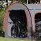 Tente de rangement pour vélos Gris et orange 218 x 156 x 180 cmLa Tente de Vélo Portable pour l'extérieur est faite pour les aventuriers modernes qui veulent du durable et du style. Super pour le camping, elle a une forme cylindrique accueillante avec un design moderne, une finition mate et une texture lisse. Elle offre beaucoup d'espace pour tes vélos et autres essentiels, c'est vraiment un incontournable pour n'importe quelle aventure en plein air. Matériaux Durables : Fabriquée en polyester imperméable et en poteaux en fibre de verre, cette tente est faite pour durer. Les morceaux en polyéthylène et polypropylène ajoutent encore plus de solidité, parfaite pour toutes les conditions météo. Composants Complets : La tente est équipée de cinq poteaux FRP (144 cm) et de deux plus longs (460 cm) pour maintenir sa forme. Elle vient aussi avec quatre cordes de hauban (250 cm) et huit piquets pour bien la fixer, plus un sac de transport pour la déplacer facilement. Design Polyvalent : Elle se plie, donc tu peux la ranger facilement quand l'espace manque. Son design résistant au vent t'assure une protection solide contre les bourrasques, parfait pour les voyages de camping imprévisibles. Utilisations Recommandées : Super pour ranger des vélos, cette tente convient aux cyclistes qui aiment être à l'extérieur. Que tu campes dans les bois ou sur des chemins de montagne, elle fait plus que ranger tes vélos ; elle protège aussi ton matériel. Entretien & Maintenance : Pour qu'elle reste comme neuve, brosse la saleté quand elle est sèche et nettoie-la après chaque sortie. Range-la à sec pour qu'elle soit prête pour ta prochaine aventure. Avertissement Gardez toutes les sources de flammes et de chaleur à l>écart de ce tissu.