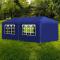 Tente de réception 3 x 6 m BleuNotre tente de réception sera un excellent endroit pour divertir votre famille et vos amis lors de toute sorte de fêtes et de réunions en plein air. Le chapiteau de jardin est fabriqué en polyéthylène résistant aux UV et à l'eau et est donc parfaitement adapté à une utilisation en plein air. Le cadre est fabriqué en acier résistant à la rouille, ce qui rend la tente stable et durable. La tente de réception a des panneaux latéraux, chacun avec des fenêtres décoratives, et un panneau de porte avec une fermeture éclair pour une entrée facile. Le belvédère de jardin est facile à assembler. REMARQUE : ce produit ne doit JAMAIS être utilisé par mauvais temps, tel que vent fort, pluie abondante, neige, tempête, etc. Ce produit ne convient pas aux intempéries telles que le vent fort, les chutes de neige et les conditions météorologiques extrêmes.