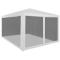 Tente de réception avec 4 parois en maille 4 x 3 mNotre tente de réception avec parois latérales en maille est parfaite pour tous ceux qui veulent avoir une sensation de plein air mais qui ne veulent pas avoir des problèmes avec les insectes lors d'activités en plein air. Cette tente de réception sera idéale pour un grand nombre d'événements en plein air, telles que spectacles, mariages, fêtes, barbecues, festivals, etc. Fabriquée en acier enduit de poudre, cette tente de réception est extrêmement durable. Le revêtement de toiture est en polyéthylène de haute qualité, ce qui le rend résistant à l'eau et aux UV. La tente dispose de quatre parois latérales en maille qui vous protègent des insectes nuisibles. L'une des parois latérales a une entrée à fermeture éclair pour un accès facile. La tente de réception est facile à installer avec les accessoires de montage inclus. REMARQUE : ce produit ne doit JAMAIS être utilisé par mauvais temps, tel que vent fort, pluie abondante, neige, tempête, etc.