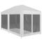 Tente de réception avec 6 parois en maille 4 x 3 mNotre tente de réception avec parois latérales en maille est parfaite pour tous ceux qui veulent avoir une sensation de plein air mais qui ne veulent pas avoir des problèmes avec les insectes lors d'activités en plein air. Cette tente de réception sera idéale pour un grand nombre d'événements en plein air, telles que spectacles, mariages, fêtes, barbecues, festivals, etc. Fabriquée en acier enduit de poudre, cette tente de réception est extrêmement durable. Le revêtement de toiture est en polyéthylène de haute qualité, ce qui le rend résistant à l'eau et aux UV. La tente dispose de six parois latérales en maille qui vous protègent des insectes nuisibles. L'une des parois latérales a une entrée à fermeture éclair pour un accès facile. La tente de réception est facile à installer avec les accessoires de montage inclus. REMARQUE : ce produit ne doit JAMAIS être utilisé par mauvais temps, tel que vent fort, pluie abondante, neige, tempête, etc.