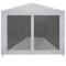 Tente de réception avec 8 parois en maille 9 x 3 mNotre tente de réception avec parois latérales en maille est parfaite pour tous ceux qui veulent avoir une sensation de plein air mais qui ne veulent pas avoir des problèmes avec les insectes lors d'activités en plein air. Cette tente de réception sera idéale pour un grand nombre d'événements en plein air, telles que spectacles, mariages, fêtes, barbecues, festivals, etc. Fabriquée en acier enduit de poudre, cette tente de réception est extrêmement durable. Le revêtement de toiture est en polyéthylène de haute qualité, ce qui le rend résistant à l'eau et aux UV. La tente dispose de huit parois latérales en maille qui vous protègent des insectes nuisibles. L'une des parois latérales a une entrée à fermeture éclair pour un accès facile. La tente de réception est facile à installer avec les accessoires de montage inclus. REMARQUE : ce produit ne doit JAMAIS être utilisé par mauvais temps, tel que vent fort, pluie abondante, neige, tempête, etc.