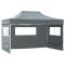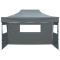 Tente de réception pliable avec 3 parois 3x4 m Acier AnthraciteNotre tente de reception pliante sera idéale pour de nombreux événements en plein air, tels que des spectacles, des marchés, des événements sportifs, des mariages, des fêtes, des barbecues, des voyages de camping, des festivals, etc. L'auvent d'extérieur a un toit résistant aux UV et à l'eau qui est fait de tissu Oxford 600D avec un revêtement en PVC et est donc parfait pour une utilisation en plein air. La tente de réception est conçue avec 3 parois latérales amovibles avec des fenêtres transparentes pour une protection totale. Le cadre est fabriqué en acier enduit de poudre résistant à la rouille, ce qui rend le chapiteau de jardin stable et durable. La tente de réception escamotable est pliable pour un rangement et un transport faciles. Elle est facile à assembler. Veuillez noter que nous recommandons de traiter l'auvent avec un jet imperméable si le chapiteau est soumis à de fortes précipitations. Ce produit ne doit JAMAIS être utilisé par mauvais temps, comme vent fort, fortes pluies, neige, tempête, etc. (nous ne sommes pas responsables pour les dommages dus à des conditions météorologiques défavorables) Ce produit ne convient pas aux intempéries telles que le vent fort, les chutes de neige et les conditions météorologiques extrêmes.