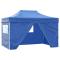 Tente de réception pliable avec 4 parois 3x4 m Acier BleuNotre tente de reception pliante sera idéale pour de nombreux événements en plein air, tels que des spectacles, des marchés, des événements sportifs, des mariages, des fêtes, des barbecues, des voyages de camping, des festivals, etc. L'auvent d'extérieur a un toit résistant aux UV et à l'eau qui est fait de tissu Oxford 600D avec un revêtement en PVC et est donc parfait pour une utilisation en plein air. La tente de réception est conçue avec 4 parois latérales amovibles avec des fenêtres transparentes pour une protection totale. Le cadre est fabriqué en acier enduit de poudre résistant à la rouille, ce qui rend le chapiteau de jardin stable et durable. La tente de réception escamotable est pliable pour un rangement et un transport faciles. Elle est facile à assembler. Veuillez noter que nous recommandons de traiter l'auvent avec un jet imperméable si le chapiteau est soumis à de fortes précipitations. Ce produit ne doit JAMAIS être utilisé par mauvais temps, comme vent fort, fortes pluies, neige, tempête, etc. (nous ne sommes pas responsables pour les dommages dus à des conditions météorologiques défavorables) Ce produit ne convient pas aux intempéries telles que le vent fort, les chutes de neige et les conditions météorologiques extrêmes.