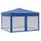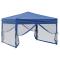 Tente de réception pliable avec parois Bleu 3x3 mCette tente de réception pliable indispensable est excellente pour un large éventail d'événements en plein air, tels que des réunions de famille, des barbecues, des pique-niques de l'après-midi, du camping, des fêtes d'anniversaire et plus encore. Design pliable : le chapiteau est pliable pour un rangement et un transport faciles.Tissu oxford 210D : ce pavillon est fabriqué en tissu Oxford 210D avec revêtement argenté et a une fonction résistante aux UV et à l'eau. Il bloque efficacement les rayons UV nocifs et peut également résister à l'humidité et au temps pluvieux.Parois latérales pratiques : ce belvédère de jardin possède des parois latérales pour vous protéger contre les insectes nuisibles. En outre, il comprend des panneaux de porte pour une entrée facile.Cadre robuste : le cadre en acier assure robustesse et stabilité. Remarque :Ce produit ne doit JAMAIS être utilisé par mauvais temps, tel que vent fort, pluie abondante, neige, tempête, etc.Chaque produit est livré avec un manuel de montage dans la boîte pour un montage facile. Ce produit ne convient pas aux intempéries telles que le vent fort, les chutes de neige et les conditions météorologiques extrêmes.