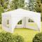 Tente de réception pliable avec parois Crème 3x3 mCette tente de réception pliable indispensable est excellente pour un large éventail d'événements en plein air, tels que des réunions de famille, des barbecues, des pique-niques de l'après-midi, du camping, des fêtes d'anniversaire et plus encore. Design pliable : le chapiteau est léger, il peut donc être plié pour faciliter le stockage et le transport.Matériau de toit de qualité supérieure : ce pavillon est fabriqué en tissu Oxford 210D avec revêtement argenté et a une fonction résistante aux UV et à l'eau. Il bloque efficacement les rayons UV nocifs et peut également résister à l'humidité et au temps pluvieux.Parois latérales pratiques : ce belvédère de jardin possède des parois latérales pour vous protéger contre les insectes nuisibles. Les panneaux latéraux sont dotés de fenêtres décoratives et le panneau de porte à fermeture à glissière est pratique pour une entrée facile.Cadre robuste : le cadre en acier assure robustesse et stabilité. Remarque :Ce produit ne doit JAMAIS être utilisé par mauvais temps, tel que vent fort, pluie abondante, neige, tempête, etc.Chaque produit est livré avec un manuel de montage dans la boîte pour un montage facile. Ce produit ne convient pas aux intempéries telles que le vent fort, les chutes de neige et les conditions météorologiques extrêmes.