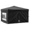 Tente de réception pliable avec parois Noir 3x3 mCette tente de réception pliable indispensable est excellente pour un large éventail d'événements en plein air, tels que des réunions de famille, des barbecues, des pique-niques de l'après-midi, du camping, des fêtes d'anniversaire et plus encore. Design pliable : le chapiteau est léger, il peut donc être plié pour faciliter le stockage et le transport.Matériau de toit de qualité supérieure : ce pavillon est fabriqué en tissu Oxford 210D avec revêtement argenté et a une fonction résistante aux UV et à l'eau. Il bloque efficacement les rayons UV nocifs et peut également résister à l'humidité et au temps pluvieux.Parois latérales pratiques : ce belvédère de jardin possède des parois latérales pour vous protéger contre les insectes nuisibles. Les panneaux latéraux sont dotés de fenêtres décoratives et le panneau de porte à fermeture à glissière est pratique pour une entrée facile.Cadre robuste : le cadre en acier assure robustesse et stabilité. Remarque :Ce produit ne doit JAMAIS être utilisé par mauvais temps, tel que vent fort, pluie abondante, neige, tempête, etc.Chaque produit est livré avec un manuel de montage dans la boîte pour un montage facile. Ce produit ne convient pas aux intempéries telles que le vent fort, les chutes de neige et les conditions météorologiques extrêmes.
