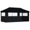 Tente de réception pliable escamotable 3 parois latérales noirCette tente de fête pliable pop-up avec parois latérales est idéale pour un large éventail d'événements en plein air, tels que des spectacles, des mariages, des fêtes, des barbecues, des festivals, etc. Matériau durable : le revêtement de toit est en tissu oxford avec un revêtement en PVC, ce qui en fait le choix parfait pour les conditions humides ou pluvieuses et est également facile à nettoyer.Conception pop-up et pliable : grâce à la conception escamotable, vous pouvez facilement installer et plier la tente en quelques secondes. Et la tente gazebo est pliable pour un rangement et un transport faciles.Conception pratique : le chapiteau a 3 parois latérales avec des fenêtres transparentes, offrant une combinaison de conceptions ouvertes et fermées pour s'adapter à une foule d'invités sans qu'ils se sentent à l'étroit.Cadre stable : le cadre en acier enduit de poudre de la tente de jardin assure robustesse et stabilité. Bon à savoir :Ce produit ne convient pas pour une utilisation pendant de mauvaises conditions météorologiques telles que vent fort, fortes pluies, neige, tempête, etc. Ce produit ne convient pas aux intempéries telles que le vent fort, les chutes de neige et les conditions météorologiques extrêmes.