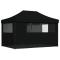 Tente de réception pliable escamotable 4 parois latérales noirCette tente de fête pliable pop-up avec parois latérales est idéale pour un large éventail d'événements en plein air, tels que des spectacles, des mariages, des fêtes, des barbecues, des festivals, etc. Matériau durable : le revêtement de toit est en tissu oxford avec un revêtement en PVC, ce qui en fait le choix parfait pour les conditions humides ou pluvieuses et est également facile à nettoyer.Conception pop-up et pliable : grâce à la conception escamotable, vous pouvez facilement installer et plier la tente en quelques secondes. Et la tente gazebo est pliable pour un rangement et un transport faciles.Design pratique : le chapiteau a quatre parois latérales avec des fenêtres transparentes, qui vous protègent des insectes embêtants. Et l'une des parois latérales a une fermeture éclair pour l'entrée et l'accès facile.Cadre stable : le cadre en acier enduit de poudre de la tente de jardin assure robustesse et stabilité.Espace spacieux : cette tente événementielle est suffisamment spacieuse pour réunir votre famille et vos amis à l'intérieur sans vous sentir à l'étroit. Bon à savoir :Ce produit ne convient pas pour une utilisation pendant de mauvaises conditions météorologiques telles que vent fort, fortes pluies, neige, tempête, etc. Ce produit ne convient pas aux intempéries telles que le vent fort, les chutes de neige et les conditions météorologiques extrêmes.