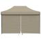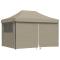 Tente de réception pliable escamotable 4 parois latérales taupeCette tente de fête pliable pop-up avec parois latérales est idéale pour un large éventail d'événements en plein air, tels que des spectacles, des mariages, des fêtes, des barbecues, des festivals, etc. Matériau durable : le revêtement de toit est en tissu oxford avec un revêtement en PVC, ce qui en fait le choix parfait pour les conditions humides ou pluvieuses et est également facile à nettoyer.Conception pop-up et pliable : grâce à la conception escamotable, vous pouvez facilement installer et plier la tente en quelques secondes. Et la tente gazebo est pliable pour un rangement et un transport faciles.Design pratique : le chapiteau a quatre parois latérales avec des fenêtres transparentes, qui vous protègent des insectes embêtants. Et l'une des parois latérales a une fermeture éclair pour l'entrée et l'accès facile.Cadre stable : le cadre en acier enduit de poudre de la tente de jardin assure robustesse et stabilité.Espace spacieux : cette tente événementielle est suffisamment spacieuse pour réunir votre famille et vos amis à l'intérieur sans vous sentir à l'étroit. Bon à savoir :Ce produit ne convient pas pour une utilisation pendant de mauvaises conditions météorologiques telles que vent fort, fortes pluies, neige, tempête, etc. Ce produit ne convient pas aux intempéries telles que le vent fort, les chutes de neige et les conditions météorologiques extrêmes.