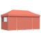 Tente de réception pliable escamotable avec 4 parois latéralesCette tente de fête pliable pop-up avec parois latérales est idéale pour un large éventail d'événements en plein air, tels que des spectacles, des mariages, des fêtes, des barbecues, des festivals, etc. Matériau durable : le revêtement de toit est en tissu oxford avec un revêtement en PVC, ce qui en fait le choix parfait pour les conditions humides ou pluvieuses et est également facile à nettoyer.Conception pop-up et pliable : grâce à la conception escamotable, vous pouvez facilement installer et plier la tente en quelques secondes. Et la tente gazebo est pliable pour un rangement et un transport faciles.Design pratique : le chapiteau a quatre parois latérales avec des fenêtres transparentes, qui vous protègent des insectes embêtants. Et l'une des parois latérales a deux fermetures éclair pour l'entrée et l'accès facile.Cadre stable : le cadre en acier enduit de poudre de la tente de jardin assure robustesse et stabilité.Espace spacieux : cette tente événementielle est suffisamment spacieuse pour réunir votre famille et vos amis à l'intérieur sans vous sentir à l'étroit. Bon à savoir :Ce produit ne convient pas pour une utilisation pendant de mauvaises conditions météorologiques telles que vent fort, fortes pluies, neige, tempête, etc. Ce produit ne convient pas aux intempéries telles que le vent fort, les chutes de neige et les conditions météorologiques extrêmes.