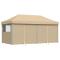 Tente de réception pliable escamotable avec 4 parois latéralesCette tente de fête pliable pop-up avec parois latérales est idéale pour un large éventail d'événements en plein air, tels que des spectacles, des mariages, des fêtes, des barbecues, des festivals, etc. Matériau durable : le revêtement de toit est en tissu oxford avec un revêtement en PVC, ce qui en fait le choix parfait pour les conditions humides ou pluvieuses et est également facile à nettoyer.Conception pop-up et pliable : grâce à la conception escamotable, vous pouvez facilement installer et plier la tente en quelques secondes. Et la tente gazebo est pliable pour un rangement et un transport faciles.Design pratique : le chapiteau a quatre parois latérales avec des fenêtres transparentes, qui vous protègent des insectes embêtants. Et l'une des parois latérales a deux fermetures éclair pour l'entrée et l'accès facile.Cadre stable : le cadre en acier enduit de poudre de la tente de jardin assure robustesse et stabilité.Espace spacieux : cette tente événementielle est suffisamment spacieuse pour réunir votre famille et vos amis à l'intérieur sans vous sentir à l'étroit. Bon à savoir :Ce produit ne convient pas pour une utilisation pendant de mauvaises conditions météorologiques telles que vent fort, fortes pluies, neige, tempête, etc. Ce produit ne convient pas aux intempéries telles que le vent fort, les chutes de neige et les conditions météorologiques extrêmes.