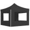 Tente de réception pliable et parois Aluminium 2x2 m AnthraciteAjoutez un élément confortable et sophistiqué pour impressionner vos invités avec notre tente de réception professionnelle ! Présentant un design classique et élégant, cette tente de réception constitue un abri pare-soleil idéal pour les événements en plein air, tels que les dîners, les barbecues, les réunions de famille, etc. Fabriqué en tissu Oxford avec revêtement en PVC, le toit vous protégera des rayons UV et des rayons nocifs du soleil. Le cadre robuste est solidement construit en alliage d'aluminium robuste et résistant à la rouille. La tente de réception est dotée de panneaux latéraux décorés de fenêtres en PVC. De plus, sa conception pliable et légère facilite les déplacements, le transport et le stockage lorsqu'elle n'est pas utilisée, ce qui en fait un excellent choix pour tous les événements en plein air. La livraison comprend également le matériau de montage pour une installation facile et sûre. Veuillez noter que nous recommandons de traiter l'auvent avec un jet imperméable si le chapiteau est soumis à de fortes précipitations. REMARQUE : ce produit ne doit JAMAIS être utilisé par mauvais temps, comme vent fort, fortes pluies, neige, tempête, etc. Ce produit ne convient pas aux intempéries telles que le vent fort, les chutes de neige et les conditions météorologiques extrêmes.