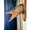 Tête de brochet sur socle en bois. Bon état général, manque un petit bout de nageoire et au niveau du haut du poisson contre le socle. Cela ne se voit pas une fois accroché. Tête du poisson vernie pour un effet mouillé vintage comme s'il venait d'être pêché.