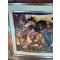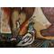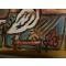Œuvre originale de grande qualité, caractéristique de l’univers pictural de Théo Tobiasse, où se mêlent figures féminines monumentales, symboles oniriques et iconographie narrative. La composition dense et chaleureuse se structure autour d’un personnage féminin tenant un oiseau, thème récurrent chez l’artiste, associé à la musique, à la liberté et au rêve.