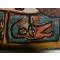 Le style graphique, reconnaissable, associe des aplats colorés aux textures épaisses et à un trait noir soulignant les contours. La frise inférieure composée de petites scènes et symboles apporte une dimension presque théâtrale et sacrée, souvent présente dans l’œuvre de Tobiasse.
