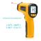 Ce thermomètre infrarouge sans contact avec visée laser fait partie des systèmes de mesure de température les plus performants et aboutis du marché. Cet accessoire est idéal pour prendre des mesures précises rapidement et sans utiliser de sonde. Ce thermomètre électronique sans contact devrait trouver sa place dans la trousse à outil de bien des bricoleurs. Le thermomètre infrarouge est en effet approprie pour mesurer la température de conduites d?eau, de moteurs, d?isolants, d?équipements électriques, éclairages etc On peut aussi utiliser ce type de thermomètre sans contact pour repérer les fuites de chaleur et les déperditions d?énergie dans une habitation. La forme de pistolet de ce thermomètre infrarouge rend son usage très pratique. Pour faciliter la visée il est doté d?un pointeur laser qui permet d?ajuster avec précision le point de contrôle de la température. Son amplitude de mesure va de -50 à +400°C. La température s'affiche instantanément sur l'écran LCD du thermomètre infrarouge.