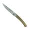 Longueur totale (mm) : 205 Longueur de la lame (mm) : 95 Largeur de la lame (mm) : 18 Épaisseur de la lame (mm) : 3 Matériau de la lame : Inox 13C26 Matériau du manche : Corne blonde Système : Cran Forcé Type d'étui : Gousset en cuir Poids (g.) : 90 Pays d'origine : France