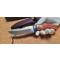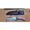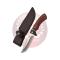 Troisième couteau de chasse , avec une lame en acier 440 de 12,4 cm, finition satinée, manche en zebrano et bois noir, avec étui en cuir.