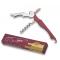 Tire-bouchon en acier de couleur rouge. Petit tire-bouchon robuste! Limonadier complet : tire-bouchon, couteau de sommelier, décapsuleur et double crans d'appuis. Le tout avec une sérigraphie au nom de notre amurerie! La grande classe !