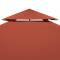 Toile supérieure double de belvédère 310 g/m² 3x3 m Terre cuiteProfitez de votre espace de vie extérieur avec notre toile supérieure à 2 niveaux de belvédère, peu importe le soleil ou la pluie ! Notre auvent de rechange est fait à partir d'un tissu de polyester durable avec un revêtement en PVC, ce qui le rend résistant à l'eau. Le toit de chapiteau offre une protection contre le soleil, la pluie et d'autres conditions météorologiques défavorables. Cette toile a des coins renforcés pour une durabilité accrue. Nous proposons également des fermetures autoagripantes pour faciliter l'installation et la fixation à votre cadre de chapiteau. Veuillez noter que le cadre de chapiteau n'est pas inclus dans la livraison.