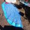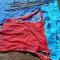 Toile de tente rouge et bleue pour protéger du matériel, du bois, ...