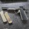 Tokyo marui 1911 custom night warrior avec frein de bouche type cache flamme ainsi que deux chargeurs gaz. Efficace et très précise même sur la distance. Quelques traces d'usure mais n'empêche en rien le bon fonctionnement.