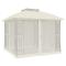 Tonnelle avec double toit et parois en filet crème acierCréez des moments inoubliables : rassemblez-vous, détendez-vous et profitez des moments avec votre famille sous votre gazebo ! Cadre robuste et durable : fabriqué en acier inoxydable, le cadre est apprécié pour une utilisation extérieure à long terme. Elle garantit la stabilité avec des poutres solides pour soutenir le toit et des supports renforcés.Grand espace : la tente de tonnelle entière est suffisamment grande pour accueillir votre famille et vos invités. Vous pouvez également ajouter des tables à manger à l'intérieur.Toit ventilé à 2 niveaux : la tonnelle adopte une élégante conception à deux couches pour une meilleure ventilation et une plus grande stabilité, ce qui vous permet de rester au frais dans les jours ensoleillés et de renforcer la résistance au vent par mauvais temps.Protection contre le soleil et la pluie : le toit incliné est fabriqué en polyester durable avec un beau design d'avant-toit, qui résiste à l'eau et aux UV, créant ainsi un endroit idéal pour les activités de plein air. Par rapport aux toits plats, il empêche l'eau de pluie de s'accumuler et prolonge la durée de vie.Parois latérales en maille respirante : les parois en maille vous offrent une bonne circulation de l'air tout en vous permettant de profiter d'une ambiance relativement privée avec votre famille et vos amis. De plus, elles peuvent vous protéger efficacement des insectes embêtants, offrant un espace de repos confortable. Les fermetures à glissière facilitent l'entrée et la sortie. Bon à savoir :Ce produit ne convient pas pour une utilisation pendant de mauvaises conditions météorologiques telles que vent fort, fortes pluies, neige, tempête, etc. Tenez les enfants et les animaux domestiques à l'écart de la zone d'assemblage jusqu'à ce que le travail soit terminé. Certaines pièces peuvent présenter des arêtes vives, portez des gants de protection si nécessaire. Le gazebo doit être positionné et fixé uniquement sur une surface plane et horizontale. N'essayez pas d'assembler le gazebo dans des conditions venteuses ou humides. Ne placez pas votre gazebo dans une zone exposée à un vent excessif. Si vous utilisez des outils électriques ou une échelle, suivez toujours les instructions de sécurité du fabricant pour éviter les blessures. NE PAS utiliser de flammes nues dans le gazebo ou à proximité du pavillon. Les objets chauds tels que les grils récemment utilisés, les chalumeaux, etc. ne doivent pas être entreposés dans le pavillon de jardin.