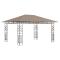 Tonnelle avec moustiquaire et lumières LED 4x3x2,73 m TaupeSi vous cherchez un supplément d'auvent pour vos activités en plein air, ce belvédère de jardin est la paire parfaite pour votre cour, vous permettant de tirer le meilleur parti de votre jardin. Le cadre est doté d'une construction en acier robuste qui maintient le cadre durable et stable. Le toit ouvrant en tissu vous protège du soleil brûlant, vous aidant à profiter d'un meilleur confort lors de vos activités en plein air. Cette tente, équipée de moustiquaires, vous protège des insectes et des moustiques. Ainsi, vous pouvez profiter de votre temps de repos en plein air sans être dérangé. De plus, cette tonnelle peut être installée en peu de temps. De plus, la guirlande lumineuse crée une ambiance chaleureuse dans votre jardin lorsque le soleil se couche. Les lumières n'apportent aucune pollution à l'environnement car elles sont chargées par l'énergie solaire pendant la journée. Remarque : ce produit ne doit JAMAIS être utilisé par mauvais temps, tel que vent fort, pluie abondante, forte chute de neige, tempête, etc. Ce produit ne doit pas être éliminé avec les autres déchets ménagers dans l'Union européenne.
