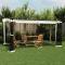 Tonnelle avec parois en filet crème 4x3 m acierCréez des moments inoubliables : rassemblez-vous, détendez-vous et profitez des moments avec votre famille sous ce gazebo ! Cadre robuste et durable : fabriqué en acier inoxydable, le cadre est apprécié pour une utilisation extérieure à long terme. Elle garantit la stabilité avec des poutres solides pour soutenir le toit et des supports renforcés. Grand espace : la tonnelle extérieure est suffisamment grande pour accueillir votre famille et vos invités. Vous pouvez également y ajouter des tables à dîner. Toit rétractable : le toit est fabriqué en polyester durable avec un revêtement PA résistant à l'eau et aux UV. De plus, le toit est rétractable, ce qui vous permet de l'ajuster pour obtenir un ombrage optimal et un environnement extérieur confortable pendant les chaudes journées d'été. Parois latérales en filet respirant : les parois en filet assurent une bonne circulation de l'air tout en vous permettant de profiter d'une atmosphère plutôt privée avec votre famille et vos amis. De plus, elles vous protègent efficacement contre les insectes embêtants et vous offrent un espace de repos confortable. Les fermetures à glissière facilitent l'accès à l'intérieur et à l'extérieur. Multifonctionnelle : cette tonnelle de patio peut être utilisée à des fins très diverses, des repas et des divertissements en plein air jusqu'à la relaxation et la méditation. Bon à savoir :Ce produit ne convient pas pour une utilisation pendant de mauvaises conditions météorologiques telles que vent fort, fortes pluies, neige, tempête, etc.