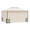 Tonnelle avec parois et toit double 3x4 m CrèmeAjoutez de l'ombre et de l'intimité pour rendre votre espace de vie extérieur plus agréable avec cette tonnelle de jardin ! Matériau haut de gamme : le belvédère de jardin est construit avec un cadre en acier enduit de poudre. Il est donc très robuste et durable. Le toit est fait de 100 % polyester avec revêtement PA, qui est résistant à l'eau et peut bloquer les rayons les plus nocifs.Double toit pour la circulation de l'air : le toit à 2 niveaux offre une meilleure circulation de l'air.Parois latérales pour la protection : les parois latérales sont incluses pour une protection complète, ce qui vous donne plus d'intimité tout en gardant les moustiques et autres insectes ennuyeux à l'écart. Les parois latérales amovibles facilitent le passage d'une configuration ouverte à un abri plus privé.Design élégant : chaque pied est livré avec deux panneaux de décoration, ajoutant une beauté supplémentaire. Remarque :Ce produit ne doit JAMAIS être utilisé par mauvais temps, tel que vent fort, pluie abondante, neige, tempête, etc. Ce produit ne convient pas aux intempéries telles que le vent fort, les chutes de neige et les conditions météorologiques extrêmes.