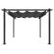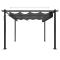 Tonnelle de jardin avec toit rétractable 3x3 m AnthraciteAjoutez de l'ombre et de l'intimité à votre espace extérieur avec cette tonnelle de jardin ! Cette tonnelle d'extérieur est fabriquée avec une structure en acier thermolaqué, ce qui la rend robuste et stable. Elle est équipée d'un toit rétractable en PA, résistant aux UV et à l'eau. Vous pouvez facilement faire pivoter et ajuster le toit à la position idéale en secouant simplement la manivelle. Ouvrez-la pour profiter du soleil et fermez-la pour vous mettre à l'ombre ou à l'abri. Cette tonnelle est idéale pour vos activités de plein air. REMARQUE : Ce produit ne doit JAMAIS être utilisé par mauvais temps, comme par vent fort, fortes pluies, neige, tempête, etc. Remarque : Ce produit ne convient pas comme abri voiture.