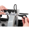 Le dispositif est doté d'une surface de glissement à faible friction, permettant au jig de se déplacer en douceur contre la meule. Cette conception facilite un affûtage uniforme sur toute la longueur de la lame, tout en offrant un excellent confort d'utilisation et une grande précision.