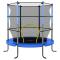Trampoline avec filet de sécurité Rond 140x160 cm BleuAmusez-vous bien et rebondissez sur ce trampoline rond ! Le trampoline rebondissant est fait d'un cadre en acier enduit de poudre avec 6 pieds pour plus de stabilité afin d'assurer la sécurité. De plus, le trampoline est équipé d'un rembourrage en PVC avec de la mousse EPE de 10 mm pour garantir la sécurité de vos enfants lorsqu'ils heurtent accidentellement le bord du trampoline. La porte du filet est pratique pour que vos enfants puissent entrer et sortir. Fermé avec des fermetures à glissière, il empêche vos enfants de tomber du trampoline. Avertissement. Ne convient pas aux enfants de moins de 3 ans. Utilisation domestique uniquement. Ne convient que pour un seul utilisateur. Risque de collision. Surveillance d'un adulte exigée. Utilisation en extérieur. Pas de sauts périlleux. Fermez toujours l'ouverture du filet avant de sauter. Lisez les instructions. Le filet doit être remplacé chaque année. Le trampoline doit être assemblé par un adulte conformément aux instructions d'assemblage et vérifié avant la première utilisation. N'utilisez pas le tapis lorsqu'il est humide. Videz vos poches et vos mains avant de sauter. Sautez toujours au milieu du tapis. Ne mangez pas en sautant. Ne sortez pas lors d'un saut. Limitez la durée d'utilisation continue (faites des pauses régulièrement). Ne pas utiliser par vent fort et sécuriser le trampoline. GPSR