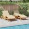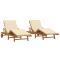 Transat 2 pcs Beige 200 x 67 x 84 cm Bois d'Acacia MassifCe transat moderne offre une expérience de détente ultime pour tous ceux qui aiment être à l'extérieur. Avec son design élégant et ses fonctionnalités pratiques, c'est le choix parfait pour ajouter une touche stylée à n'importe quel jardin ou terrasse. Sa simplicité, ses lignes claires et son design sans fioritures s'harmonisent brillamment avec l'esthétique moderne, ce qui le rend idéal pour tout espace extérieur. Matériaux : Ce transat en bois d'acacia solide est beau et robuste, garantissant stabilité et longévité. Sa combinaison avec du polyester assure un confort optimum et un look attrayant, le rendant parfait pour vos moments en plein air. Composants inclus : Avec ses finitions soignées et ses pieds en acacia marron, ce transat est muni d'un rembourrage en mousse pour un confort maximum. Son mécanisme manuel réglable permet de l'ajuster à vos envies. Caractéristiques / Fonction / Design : Ce transat est conçu pour résister aux intempéries, offrant une protection contre les diverses conditions climatiques. Avec ses dossiers inclinables et repose-pieds réglables, il s'adapte à toutes vos préférences pour un maximum de confort. Utilisations recommandées : Parfait pour le jardin ou la terrasse, ce transat est fait pour un usage extérieur. Que vous vouliez bronzer, lire ou socialiser, il s'adapte aisément à n'importe quel décor extérieur. Entretien : L'assemblage se fait facilement avec un tournevis et nécessite deux personnes. Pour le garder en bon état, un petit nettoyage avec un chiffon humide suffit, tout en évitant les produits chimiques agressifs. Pensez à vérifier régulièrement pour garantir sa longévité.