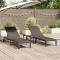 Transat 2-personne 3 pcs Marron polyrotinCe bain de soleil moderne avec table rend la détente en plein air plus sympa grâce à son design stylé et épuré, parfait pour votre jardin ou terrasse. Avec ses lignes simples et sa fonctionnalité, il vous fera vivre une ambiance de station balnéaire chez vous. Conçu pour être élégant tout en restant pratique, il s'intègre aisément dans différents environnements extérieurs, vous offrant un coin confortable pour profiter du soleil ou des brises fraîches du soir. Entre style et confort, ce bain de soleil est top pour les amateurs de jardin et les rassemblements en plein air. Matériaux : Le bain de soleil et la table sont faits en poly rotin, reconnu pour sa robustesse et sa résistance à l'extérieur. Combiné avec un cadre en acier peint en poudre, il résiste aux UV et à l'humidité, parfait pour une utilisation à long terme. Composants inclus : L'ensemble complet contient deux bains de soleil de 206 x 62,5 x 74 cm et une table de 39 x 39 x 40,5 cm, avec une surface en verre trempé qui ajoute une touche d'élégance idéal pour vos boissons, livres ou déco. Fonctionnalités / Fonction / Design : Avec un dossier ajustable, ce bain de soleil vous permet de trouver facilement votre angle de relaxation préféré. Les roues incluses rendent le déplacement simple, permettant d'ajuster la position selon le soleil ou la vue souhaitée. Son design offre une stabilité sur différents terrains, des terrasses aux chemins de jardin. Utilisations recommandées : Idéal pour l'extérieur, cet ensemble est parfait pour les jardins, terrasses et patios. Que vous organisiez une fête ou que vous souhaitiez juste vous relaxer, il rehausse l'ambiance de tout espace extérieur et est parfait pour se détendre seul ou recevoir des invités. Entretien & maintenance : Pour garder votre bain de soleil en bon état, essuyez-le avec un chiffon sec. Protégez la table en verre des griffures avec des dessous de verre et des sets pour objets chauds. Un bon entretien garantit qu'il reste un élément chic dans votre décoration extérieure.