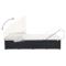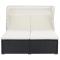 Transat à 2 places avec coussin Résine tressée NoirCe confortable transat pour 2 personnes allie style et fonctionnalité et est parfait pour vous détendre près de votre piscine, sur le balcon, sur le patio ou au camping pendant vos vacances ou loisirs. Cette chaise longue est soutenue par un cadre en acier enduit de poudre, ce qui la rend stable et durable pour des années de détente. La résine tressée rend cette chaise longue résistante à l'usure et adaptée à une utilisation quotidienne dehors. Elle est également facile à nettoyer avec un chiffon humide. Les deux côtés du lit peuvent être tirés vers le haut et ajustés dans différents réglages pour les positions assises ou couchées les plus confortables. Le coussin rembourré offre le confort suprême avec un soutien supplémentaire. De plus, le toit pliable vous protège du soleil brûlant. Remarque : Nous recommandons de couvrir le transat par temps pluvieux, neigeux, gelé ou par tout autre temps rigoureux afin de prolonger sa durée de vie.