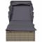 Transat avec toit pliable gris 213x63x97 cm résine tresséeCe transat à toit pliable est idéal pour vous détendre près de la piscine, sur votre balcon ou au camping pendant vos vacances ou vos loisirs. Matériau durable : la chaise longue est fabriquée en rotin PE, résistant aux intempéries et facile à nettoyer. Elle reste belle à l'extérieur pendant longtemps. Elle est plus économique que d'autres matériaux tout en offrant une excellente qualité, commodité et un aspect esthétique. Cadre stable : l'acier est un matériau exceptionnellement dur et résistant. Il offre robustesse et stabilité pour le bain de soleil. Le revêtement en poudre sur l'acier crée une couche protectrice contre l'usure. Siège réglable : les deux côtés du lit de jour peuvent être tirés vers le haut et ajustés à différents angles pour une position allongée plus confortable. Toit pliable : le toit peut être facilement ajusté en fonction de vos besoins. Ouvrez le toit pour profiter de la lumière du soleil et fermez-le pour vous détendre à l'ombre. Bon à savoir : Pour faciliter au maximum le montage, chaque produit est livré avec des instructions. Remarque : Pour que vos meubles d'extérieur restent beaux, nous vous recommandons de les protéger avec une housse imperméable. Maximum 110 kg par siège. Soyez conscient du risque de feux ouverts et d'autres sources de forte chaleur à proximité du produit. ,