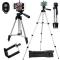 Le trépied dispose d'un filetage universel pour les appareils photo et caméscopes, ainsi que d'un support pour téléphones. Équipé de pieds télescopiques extensibles avec quatre niveaux de réglage de la hauteur, sa construction robuste garantit une image stable et fluide. La hauteur du support varie de 34 cm à 100 cm.