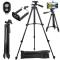 Le trépied est livré avec une télécommande pratique et un étui de transport élégant. La télécommande Bluetooth vous permet de prendre des photos à distance, idéale pour les smartphones sous Android ou iOS. Simplifiez vos séances photo et profitez d'une liberté totale avec cet accessoire indispensable.