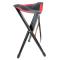 Trépied robuste en bois et cuir avec bande fluo sur le pourtour de l'assise, de 65 cm de hauteur.